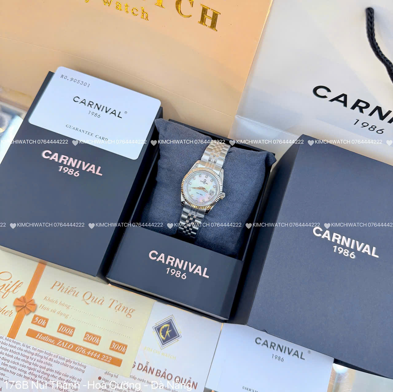 Đồng hồ Carnival NỮ 30mm vỏ bằng thép không gỉ , Kính tráng sapphire chống xước, chống nước 3atm, dây kim loại cao cấp. Máy Pin Nhật bền bỉ . Tuổi thọ pin lên đến 3 năm . Đồng hồ Carnival lên tay rất sang chảnh, thu hút mọi ánh nhìn, giúp bạn luôn tự tin , xinh đẹp và tràn đầy năng lượng . Tặng fullbox : hộp gỗ bọc da cao cấp, túi giấy hãng, sổ thẻ , túi giấy của shop , thẻ bảo hành, voucher giảm giá... Đổi trả lên đến 30 ngày , lỗi đổi mới không cần chờ đợi. Bảo hành lên đến 2 năm giúp quý khách yên tâm sử dụng