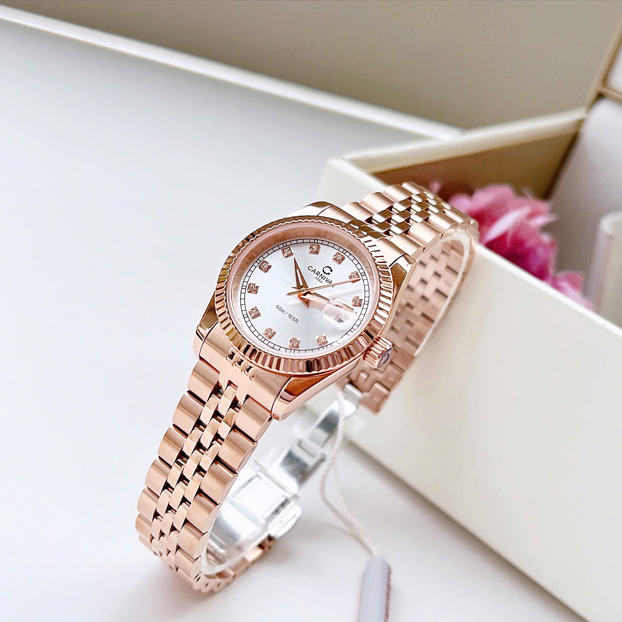 Đồng hồ Carnival NỮ 31mm vỏ bằng thép không gỉ , Kính tráng sapphire chống xước, chống nước 3atm, dây kim loại cao cấp. Máy Pin Nhật bền bỉ . Tuổi thọ pin lên đến 3 năm . Đồng hồ Carnival lên tay rất sang chảnh, thu hút mọi ánh nhìn, giúp bạn luôn tự tin , xinh đẹp và tràn đầy năng lượng . Tặng fullbox : hộp gỗ bọc da cao cấp, túi giấy hãng, sổ thẻ , túi giấy của shop , thẻ bảo hành, voucher giảm giá... Đổi trả lên đến 30 ngày , lỗi đổi mới không cần chờ đợi. Bảo hành lên đến 2 năm giúp quý khách yên tâm sử dụng