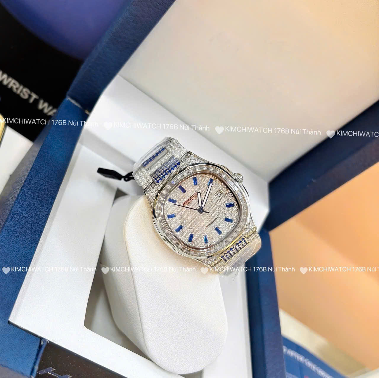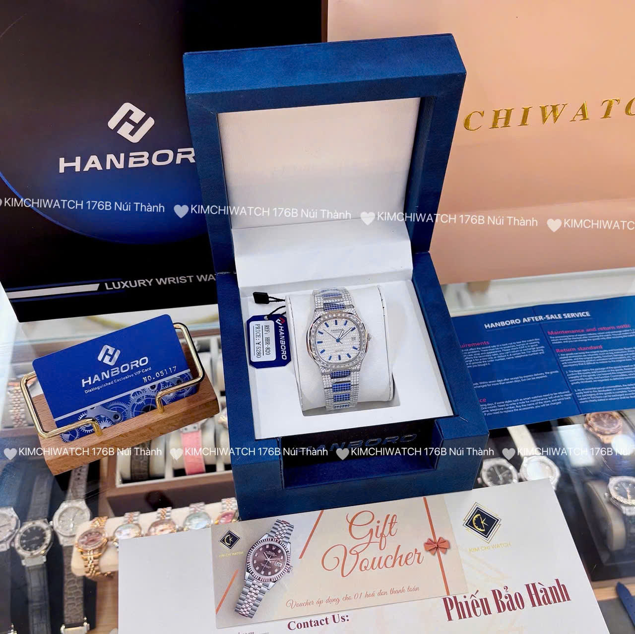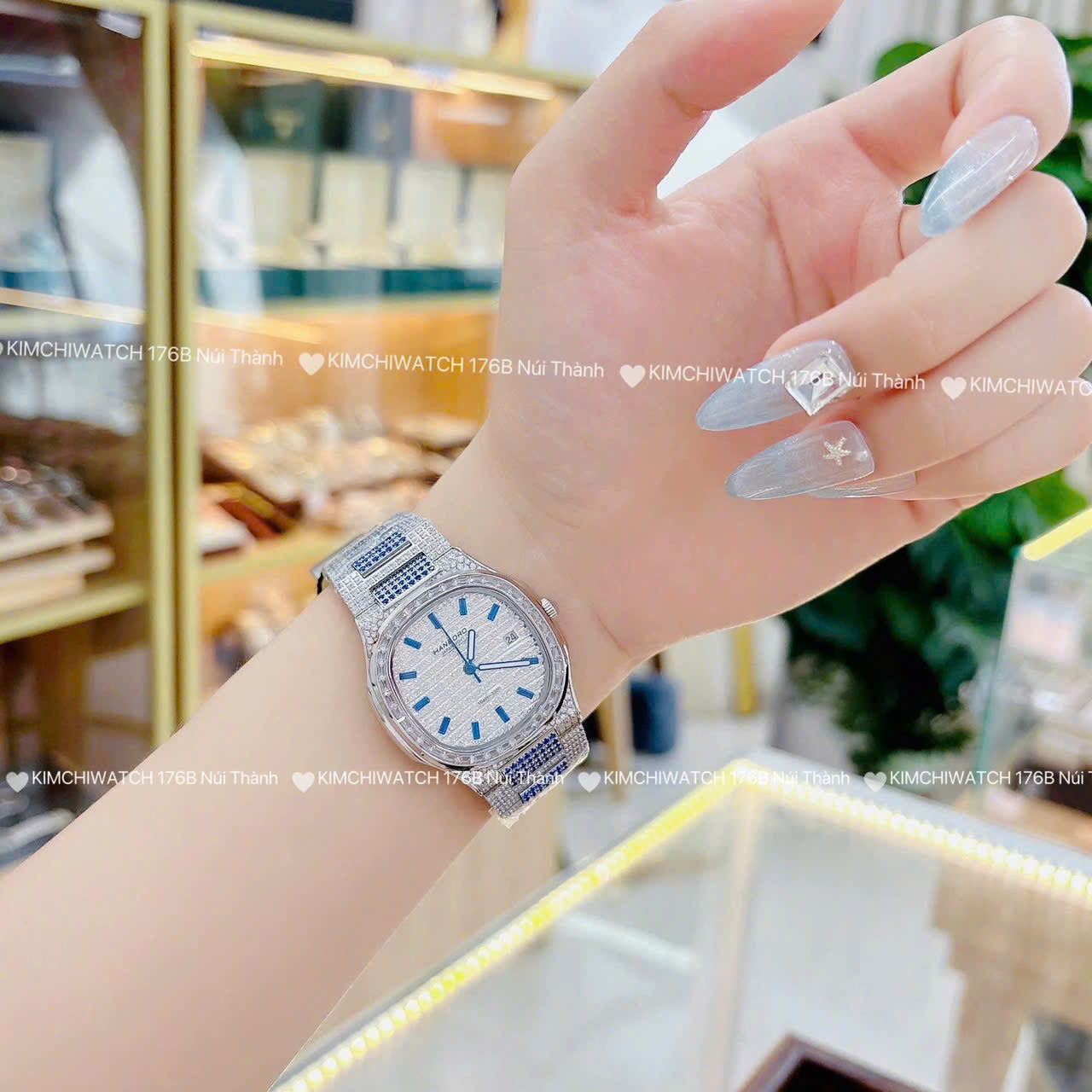 Đồng hồ Hanboro FULL ĐÁ NEW size 35 mm vỏ bằng thép không gỉ , đính đá swarovski cao cấp, Kính khoáng cứng , chống nước 3atm, dây kim loại cao cấp. Máy cơ Nhật bền bỉ . Đồng hồ Hanboro lên tay rất sang chảnh, thu hút mọi ánh nhìn, giúp bạn luôn tự tin , xinh đẹp và tràn đầy năng lượng . Tặng fullbox : hộp gỗ bọc da cao cấp, túi giấy hãng, sổ thẻ , túi giấy của shop , thẻ bảo hành, voucher giảm giá... Đổi trả lên đến 30 ngày , lỗi đổi mới không cần chờ đợi. Bảo hành lên đến 3 năm giúp quý khách yên tâm sử dụng .