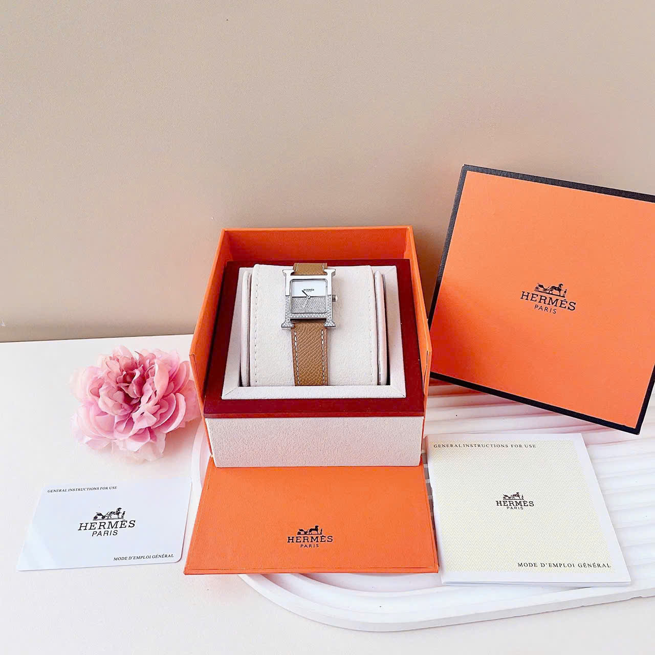 Đồng hồ Hermes 34mm. Viền đá vỏ bằng thép không gỉ , Kính tráng khoáng cứng, chống nước 3atm, dây da. Máy Pin Nhật bền bỉ . Tuổi thọ pin lên đến 3 năm . Đồng hồ Hermes lên tay rất sang chảnh, thu hút mọi ánh nhìn, giúp bạn luôn tự tin , xinh đẹp và tràn đầy năng lượng . Tặng fullbox : hộp gỗ bọc da cao cấp, túi giấy hãng, sổ thẻ , túi giấy của shop , thẻ bảo hành, voucher giảm giá... Đổi trả lên đến 30 ngày , lỗi đổi mới không cần chờ đợi. Bảo hành lên đến 2 năm giúp quý khách yên tâm sử dụng