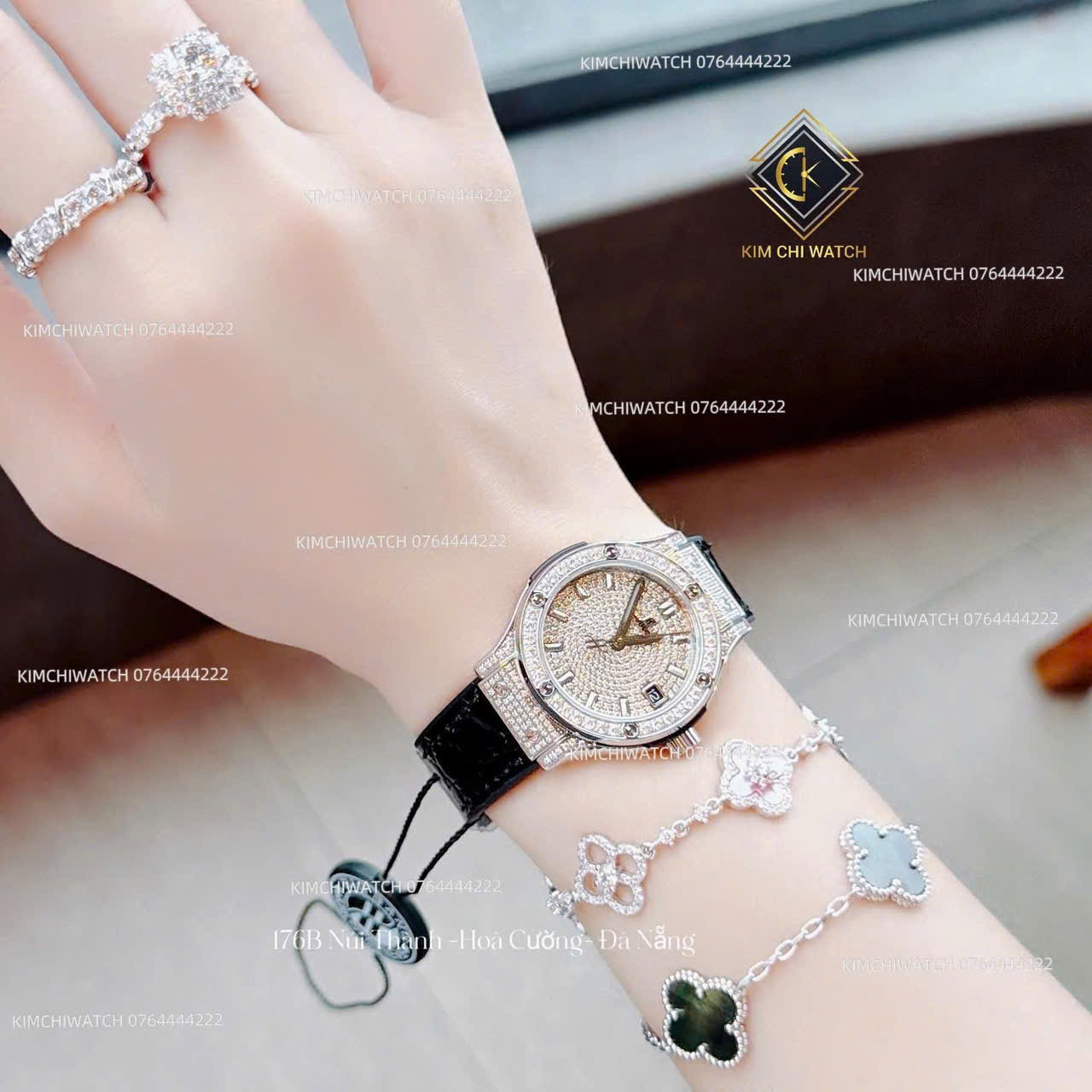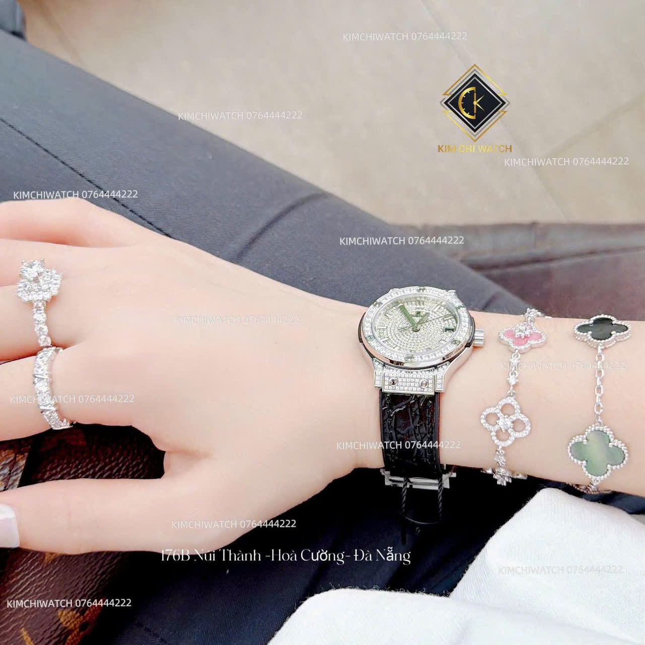 • Đồng Hồ Hublot ZF full đá - Nữ - Máy Nhật - Size 31mm, Kính Khoáng Cứng, Chống Nước 3ATM, Dây su bọc da