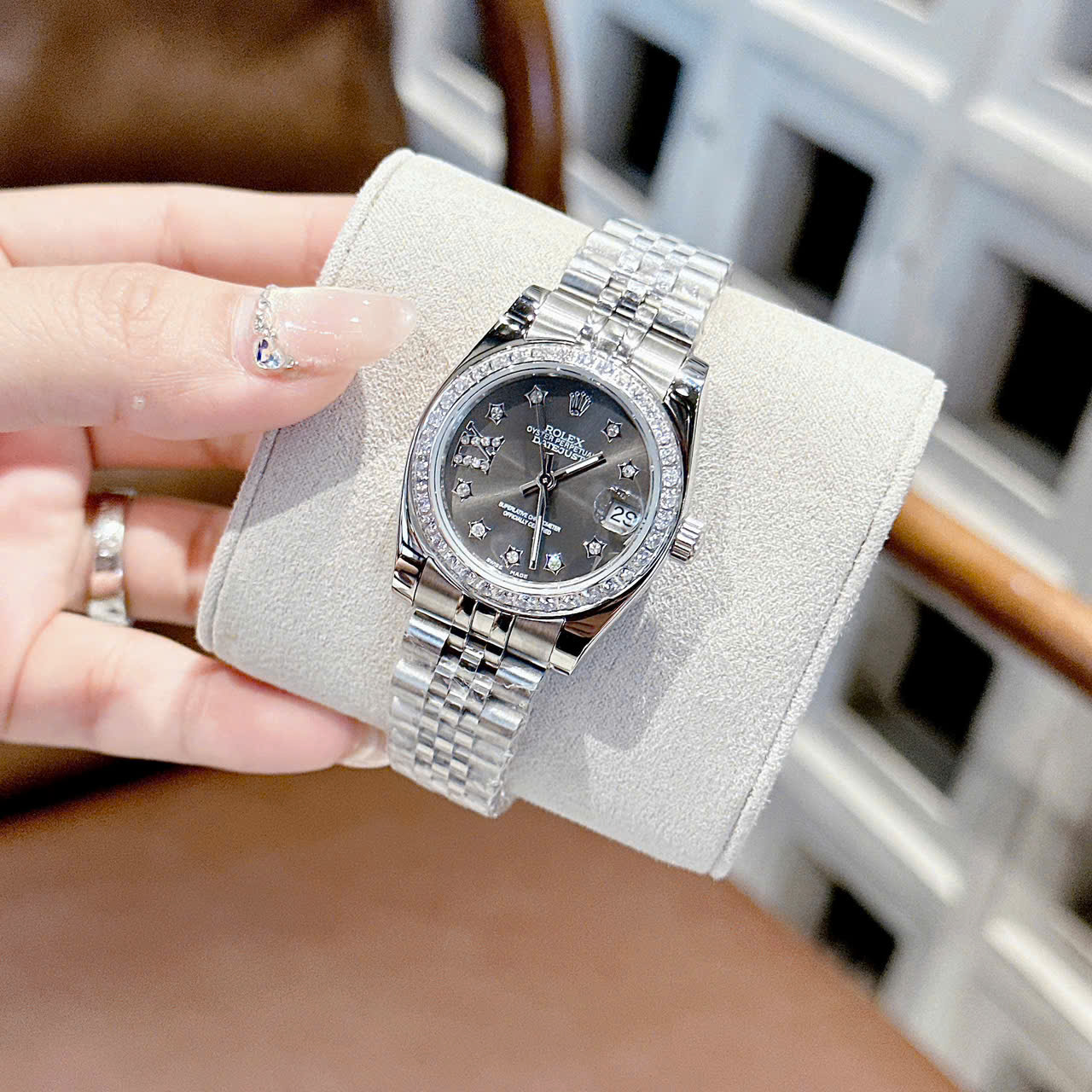 Đồng hồ Rolex 31mm vỏ bằng thép không gỉ , Kính khoáng, chống nước 3atm, dây kim loại .Máy Pin Nhật bền bỉ . Tuổi thọ pin lên đến 3 năm . Đồng hồ Rolex lên tay rất sang chảnh, thu hút mọi ánh nhìn, giúp bạn luôn tự tin , xinh đẹp và tràn đầy năng lượng . Tặng fullbox : hộp gỗ bọc da cao cấp, túi giấy hãng, sổ thẻ , túi giấy của shop , thẻ bảo hành, voucher giảm giá... Đổi trả lên đến 30 ngày , lỗi đổi mới không cần chờ đợi. Bảo hành lên đến 2 năm giúp quý khách yên tâm sử dụng