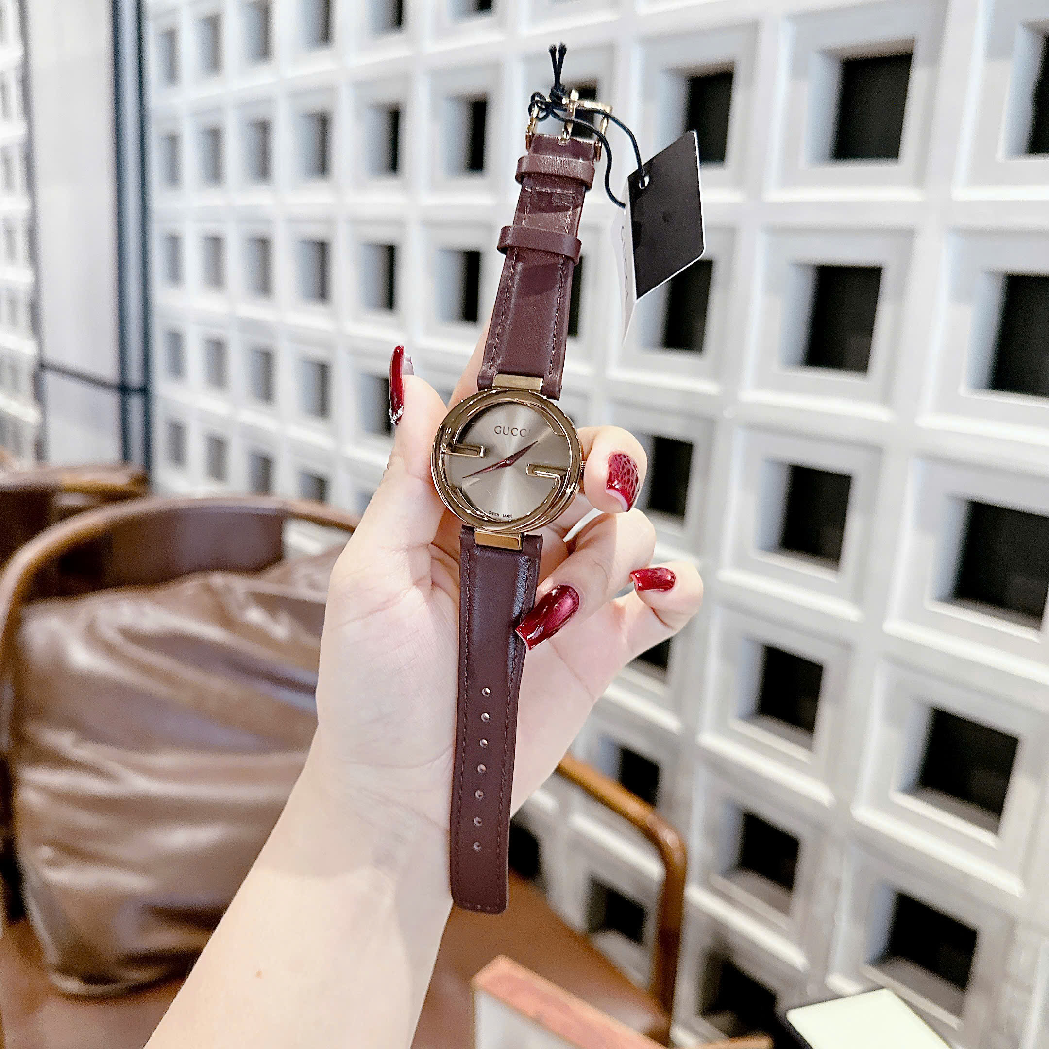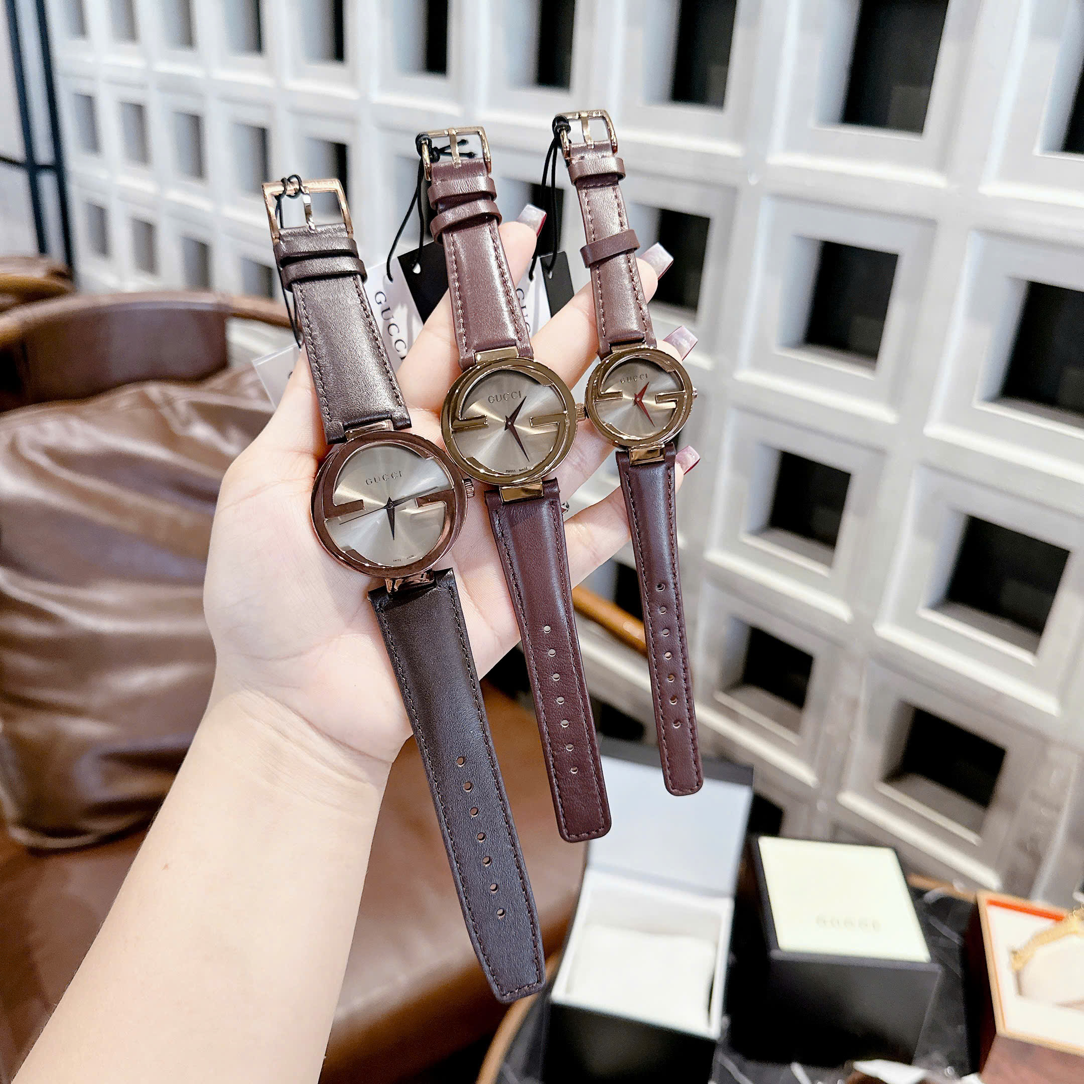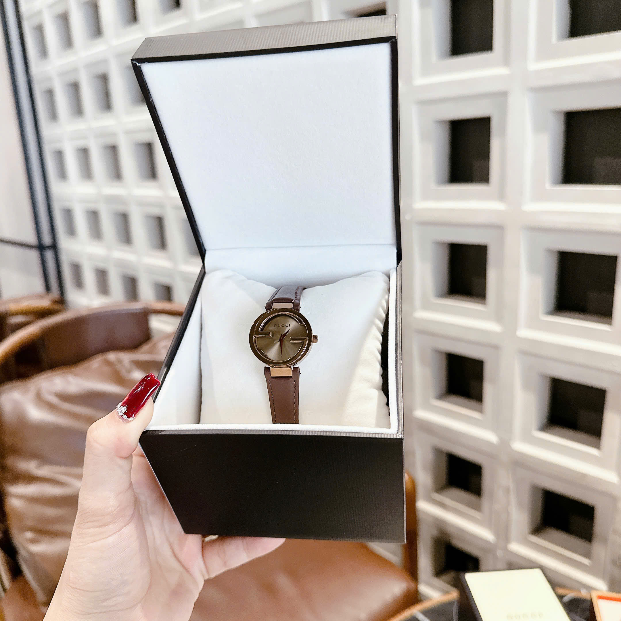 Đồng hồ GUCCI INTERLOCKING- Size 29/36/40mm - vỏ bằng thép không gỉ , chống nước 3atm, dây da cao cấp. Máy Pin Nhật bền bỉ . Tuổi thọ pin lên đến 3 năm . Đồng hồ Gucci lên tay rất sang chảnh, thu hút mọi ánh nhìn, giúp bạn luôn tự tin , xinh đẹp và tràn đầy năng lượng . Tặng fullbox : hộp gỗ bọc da cao cấp, túi giấy hãng, sổ thẻ , túi giấy của shop , thẻ bảo hành, voucher giảm giá... Đổi trả lên đến 30 ngày , lỗi đổi mới không cần chờ đợi. Bảo hành lên đến 2 năm giúp quý khách yên tâm sử dụng