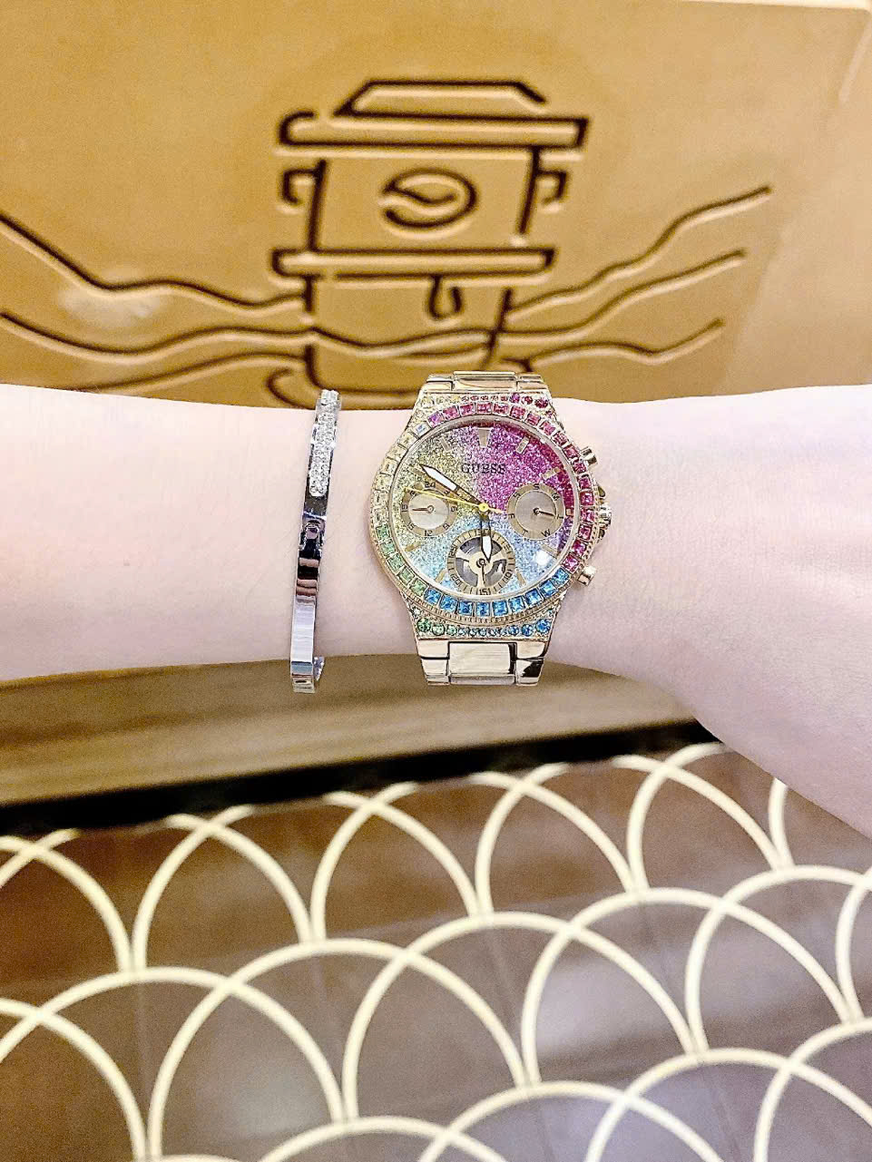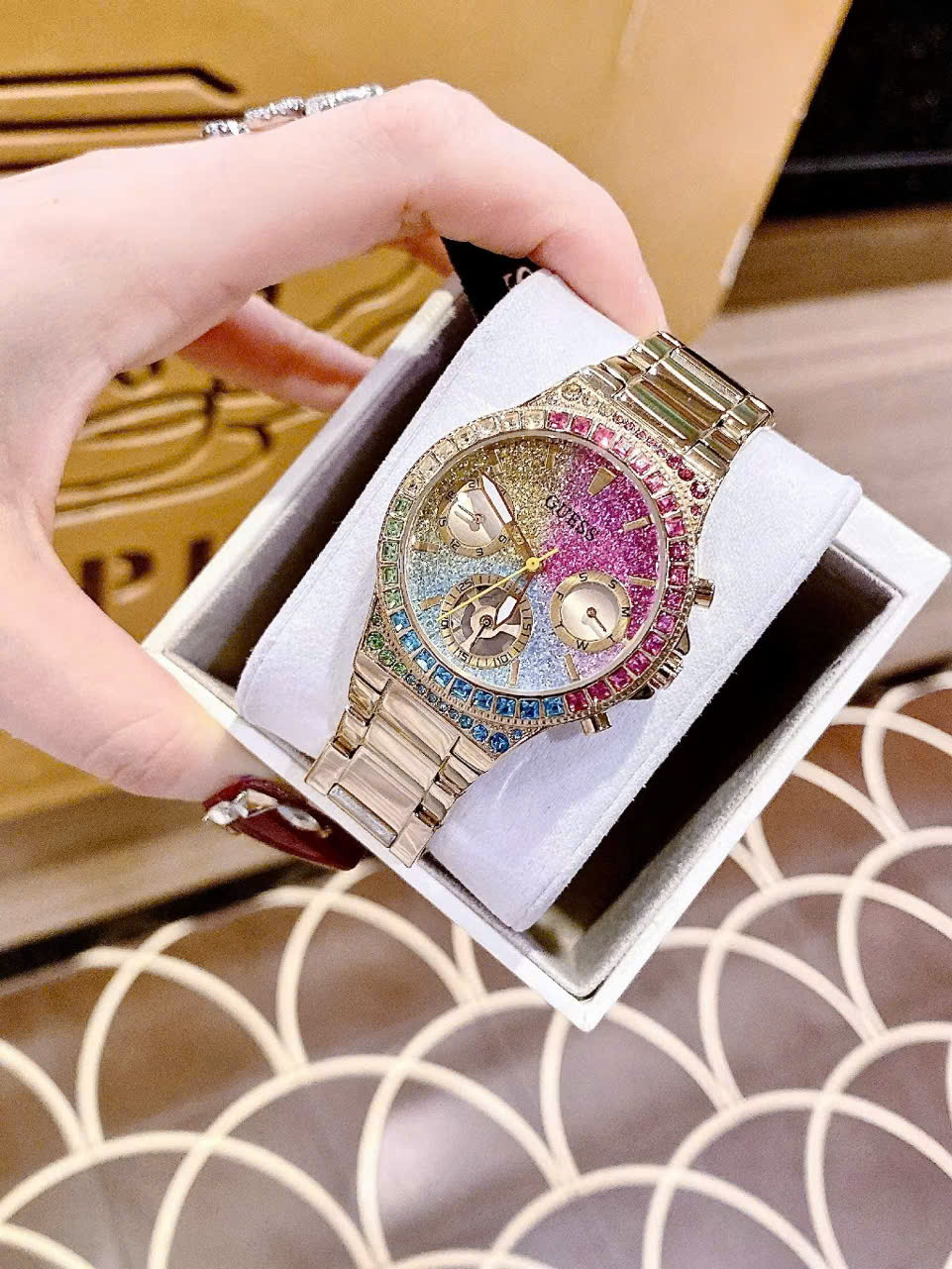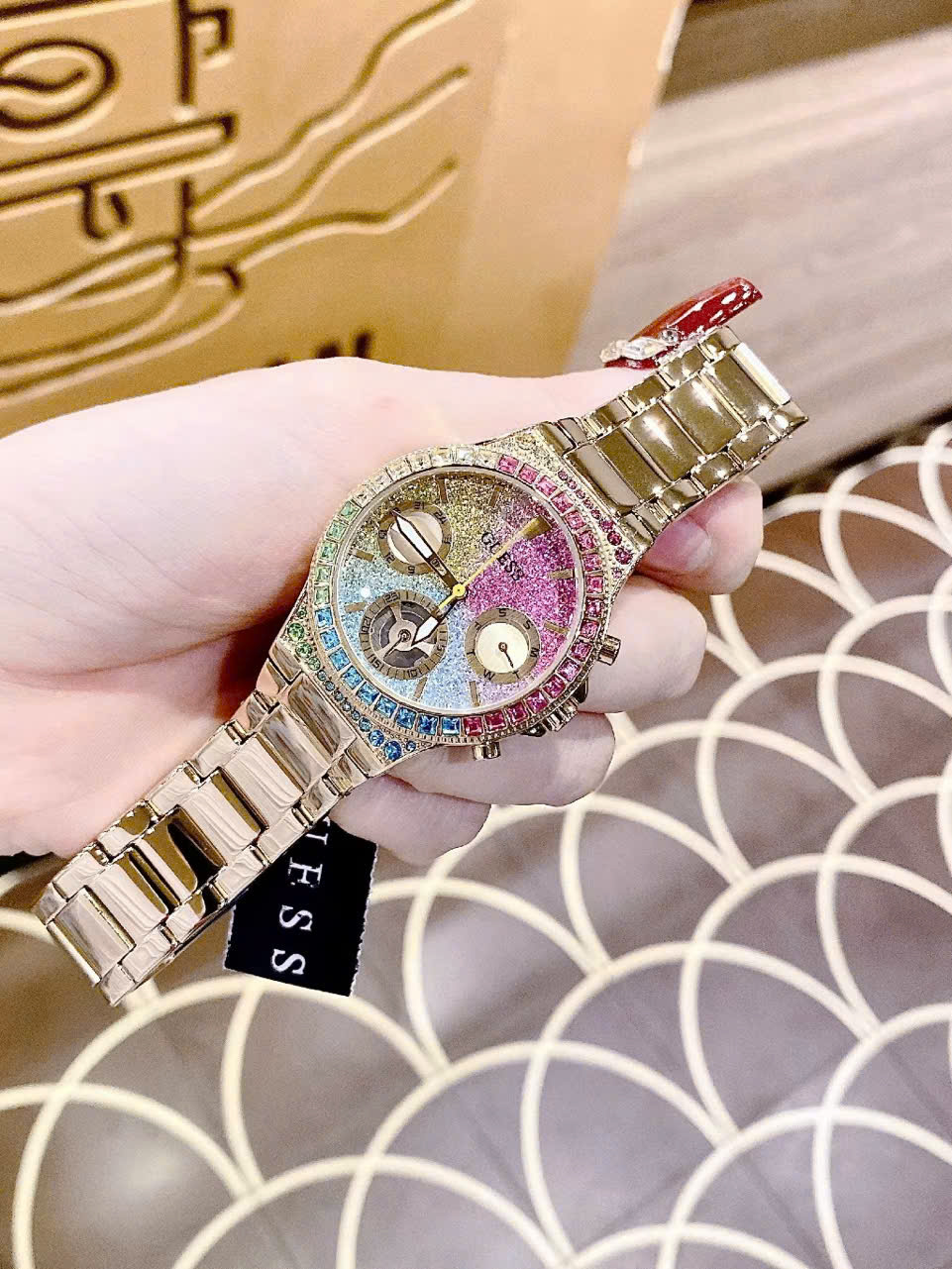 Đồng hồ GUESS 36mm vỏ bằng thép không gỉ , Kính tráng khoáng cứng, chống nước 3atm, dây kim loại cao cấp. Máy Pin Nhật bền bỉ . Tuổi thọ pin lên đến 3 năm . Đồng hồ GUESS lên tay rất sang chảnh, thu hút mọi ánh nhìn, giúp bạn luôn tự tin , xinh đẹp và tràn đầy năng lượng . Tặng fullbox : hộp gỗ bọc da cao cấp, túi giấy hãng, sổ thẻ , túi giấy của shop , thẻ bảo hành, voucher giảm giá... Đổi trả lên đến 30 ngày , lỗi đổi mới không cần chờ đợi. Bảo hành lên đến 2 năm giúp quý khách yên tâm sử dụng