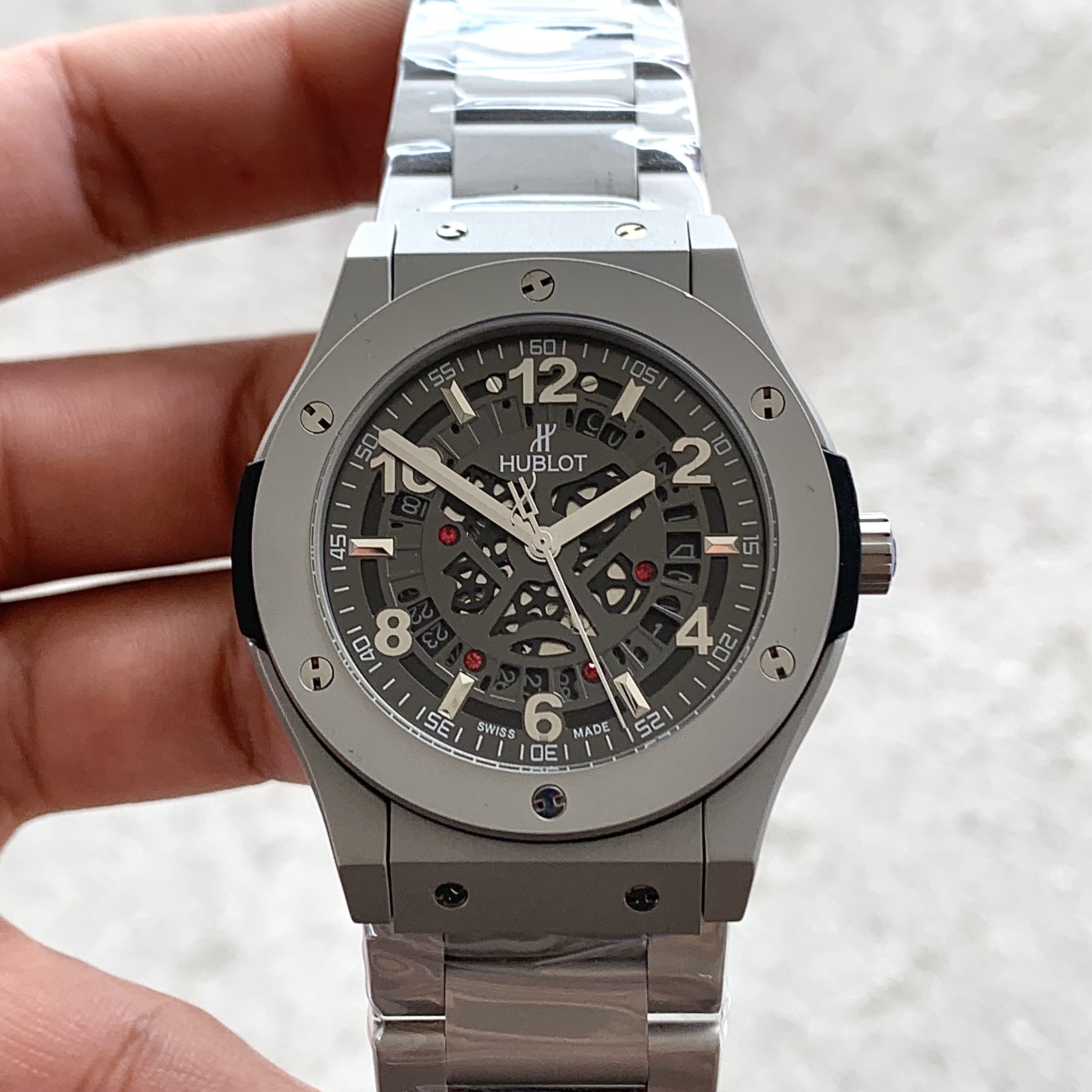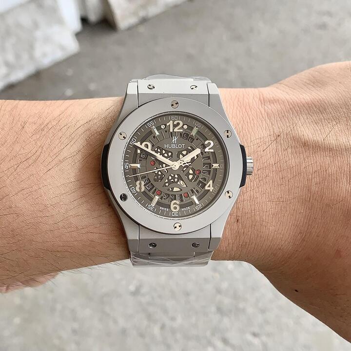 Đồng hồ Hublot mặt lộ Cơ NAM 41mm vỏ bằng thép không gỉ , Kính tráng sapphire chống xước, chống nước 3atm, dây Su bọc da cao cấp. Máy Cơ Nhật bền bỉ . Đồng hồ Hublot lên tay rất sang chảnh, thu hút mọi ánh nhìn, giúp bạn luôn tự tin , xinh đẹp và tràn đầy năng lượng . Tặng fullbox : hộp gỗ bọc da cao cấp, túi giấy hãng, sổ thẻ , túi giấy của shop , thẻ bảo hành, voucher giảm giá... Đổi trả lên đến 30 ngày , lỗi đổi mới không cần chờ đợi. Bảo hành lên đến 2 năm giúp quý khách yên tâm sử dụng .