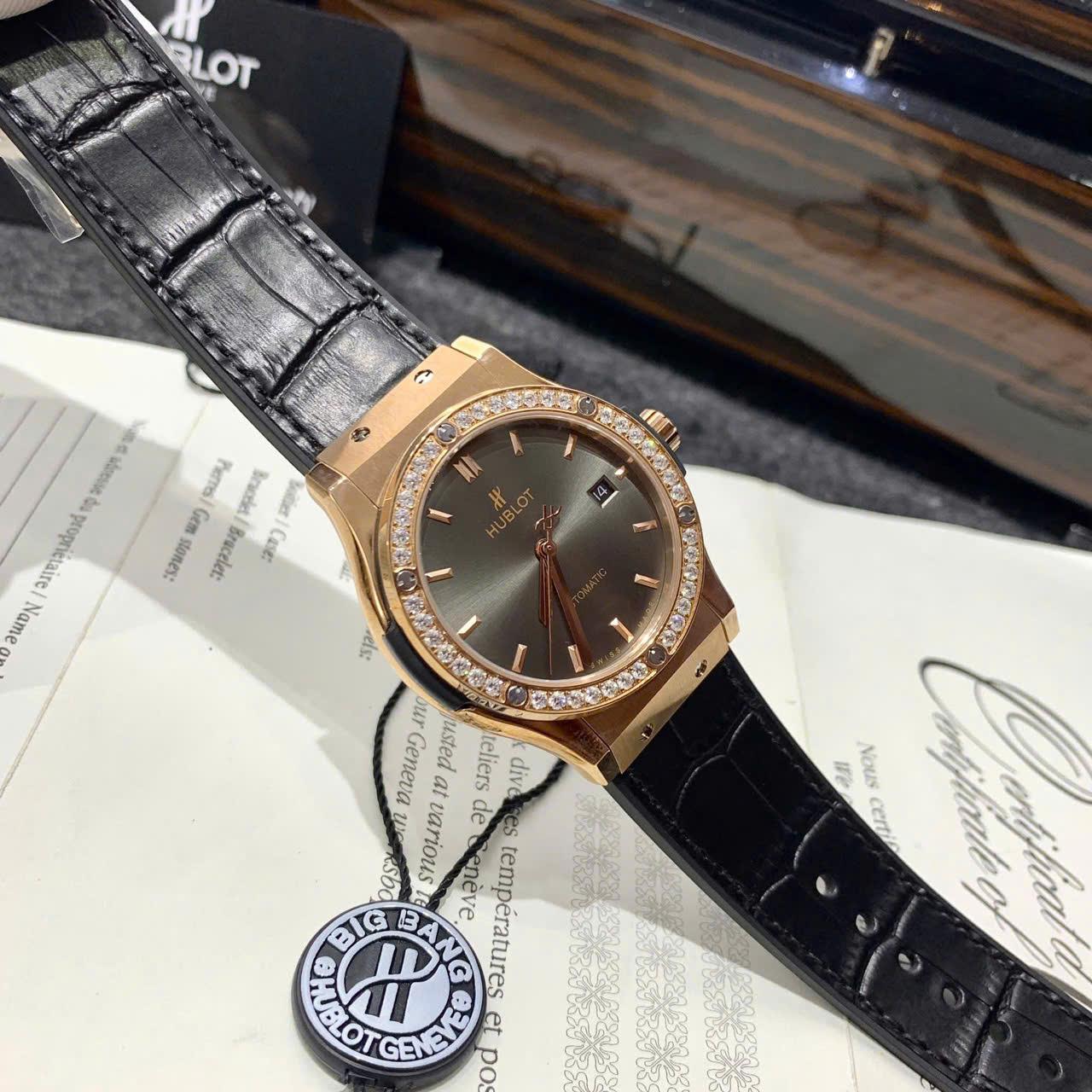 Đồng hồ Hublot ZF 40mm vỏ bằng thép không gỉ , đính đá kwz cao cấp, Kính khoáng chống xước, chống nước 3atm, dây da cao cấp. Máy Pin Nhật cao cấp. Tuổi thọ pin lên đến 3 năm. Đồng hồ Hublot lên tay rất sang chảnh, thu hút mọi ánh nhìn, giúp bạn luôn tự tin , xinh đẹp và tràn đầy năng lượng . Tặng fullbox : hộp gỗ bọc da cao cấp, túi giấy hãng, sổ thẻ , túi giấy của shop , thẻ bảo hành, voucher giảm giá... Đổi trả lên đến 30 ngày , lỗi đổi mới không cần chờ đợi. Bảo hành lên đến 2 năm giúp quý khách yên tâm sử dụng