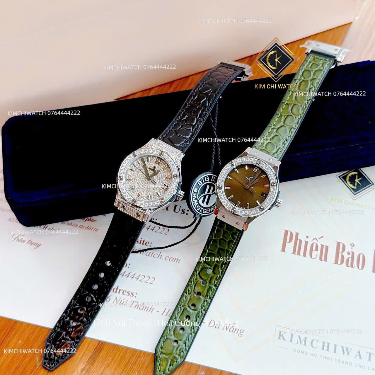 • Đồng Hồ Hublot ZF full đá - Nữ - Máy Nhật - Size 31mm, Kính Khoáng Cứng, Chống Nước 3ATM, Dây su bọc da