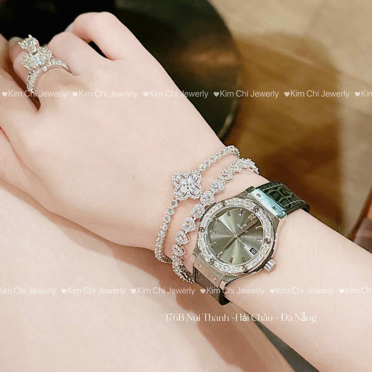 Đồng hồ Hublot ZF 31mm vỏ bằng thép không gỉ , đính đá swarovski cao cấp, Kính khoáng chống xước, chống nước 3atm, dây Silicon bọc da cao cấp. Máy Pin Nhật cao cấp. Tuổi thọ pin lên đến 3 năm. Đồng hồ Hublot lên tay rất sang chảnh, thu hút mọi ánh nhìn, giúp bạn luôn tự tin , xinh đẹp và tràn đầy năng lượng . Tặng fullbox : hộp da cao cấp, túi giấy hãng, sổ thẻ , túi giấy của shop , thẻ bảo hành, voucher giảm giá... Đổi trả lên đến 30 ngày , lỗi đổi mới không cần chờ đợi. Bảo hành lên đến 3 năm giúp quý khách yên tâm sử dụng