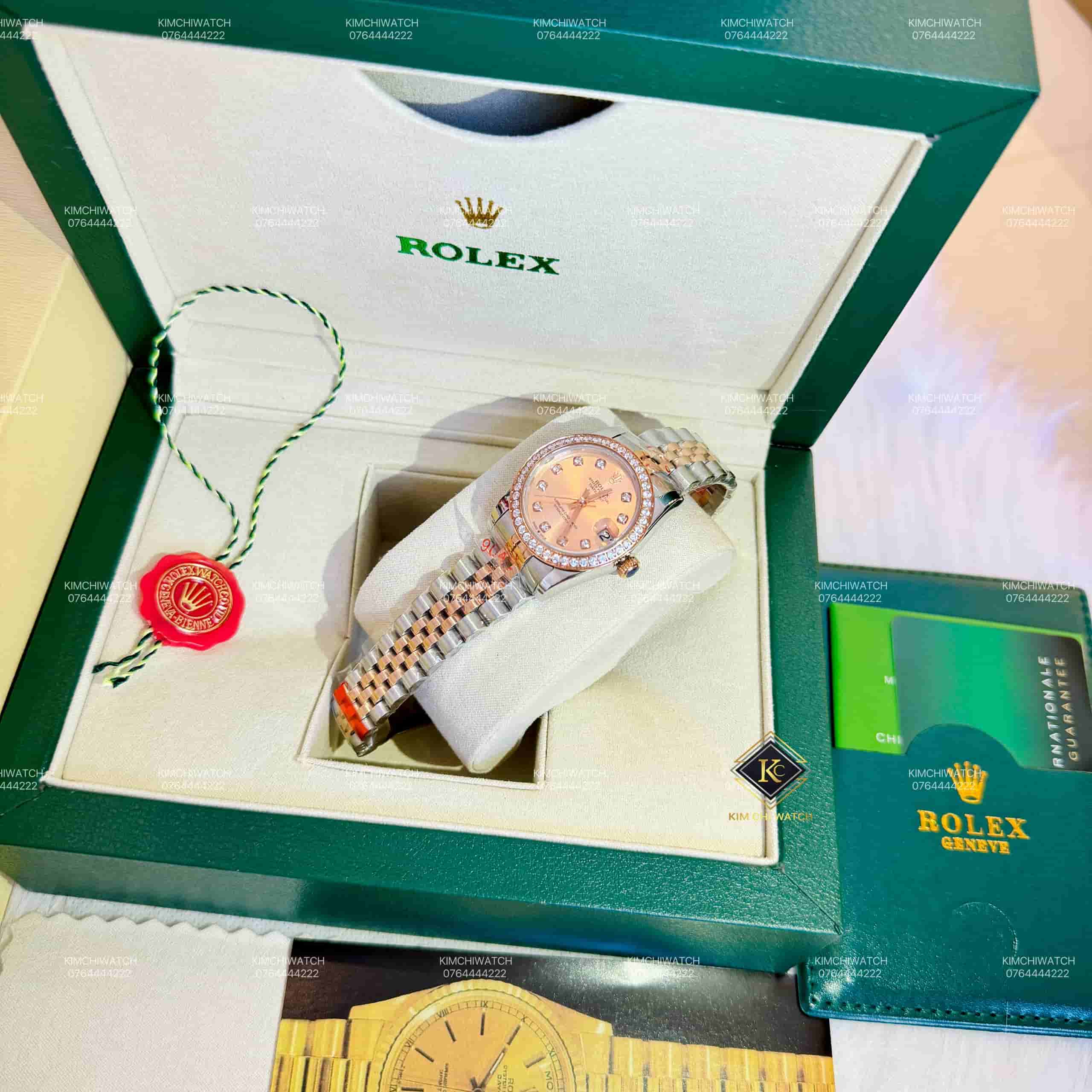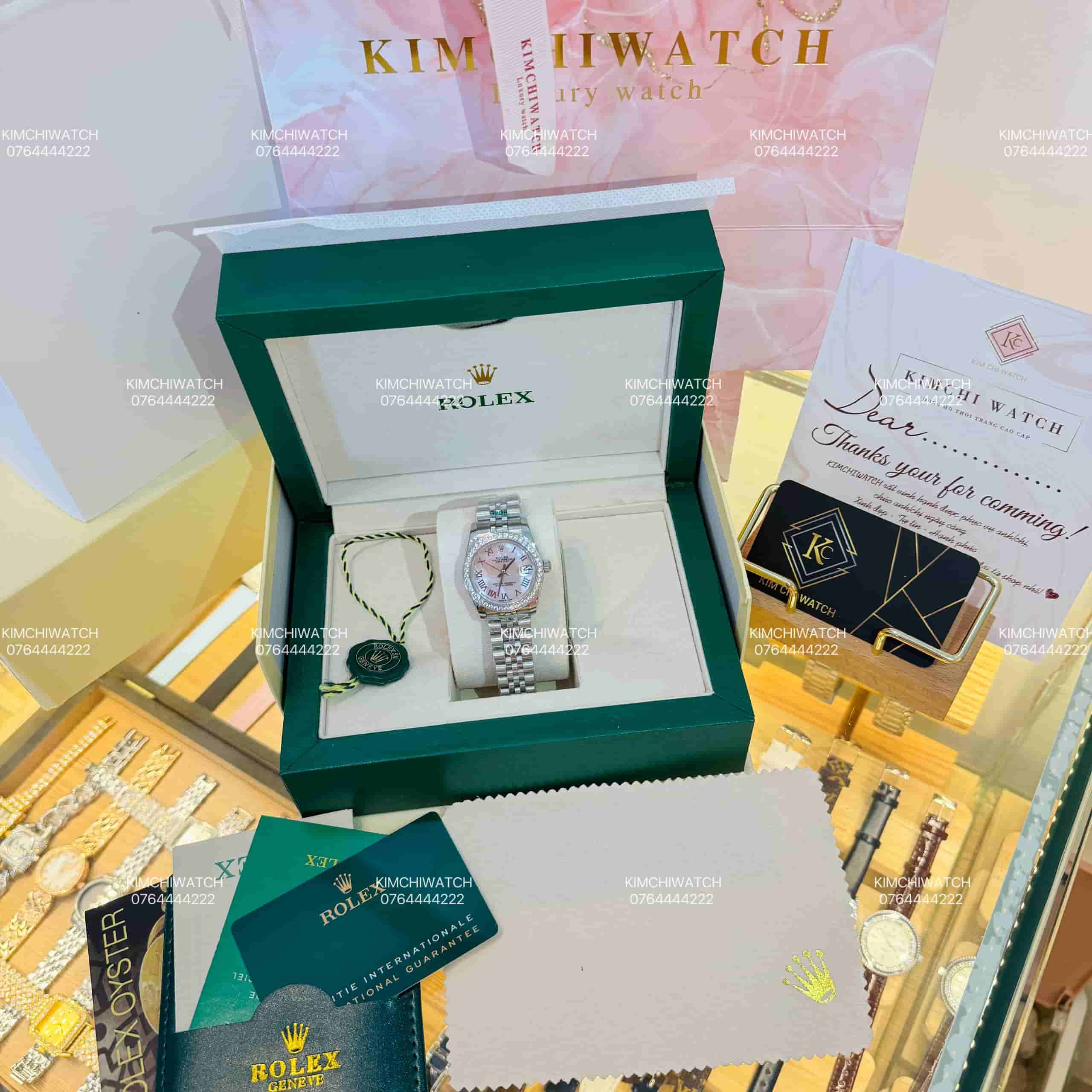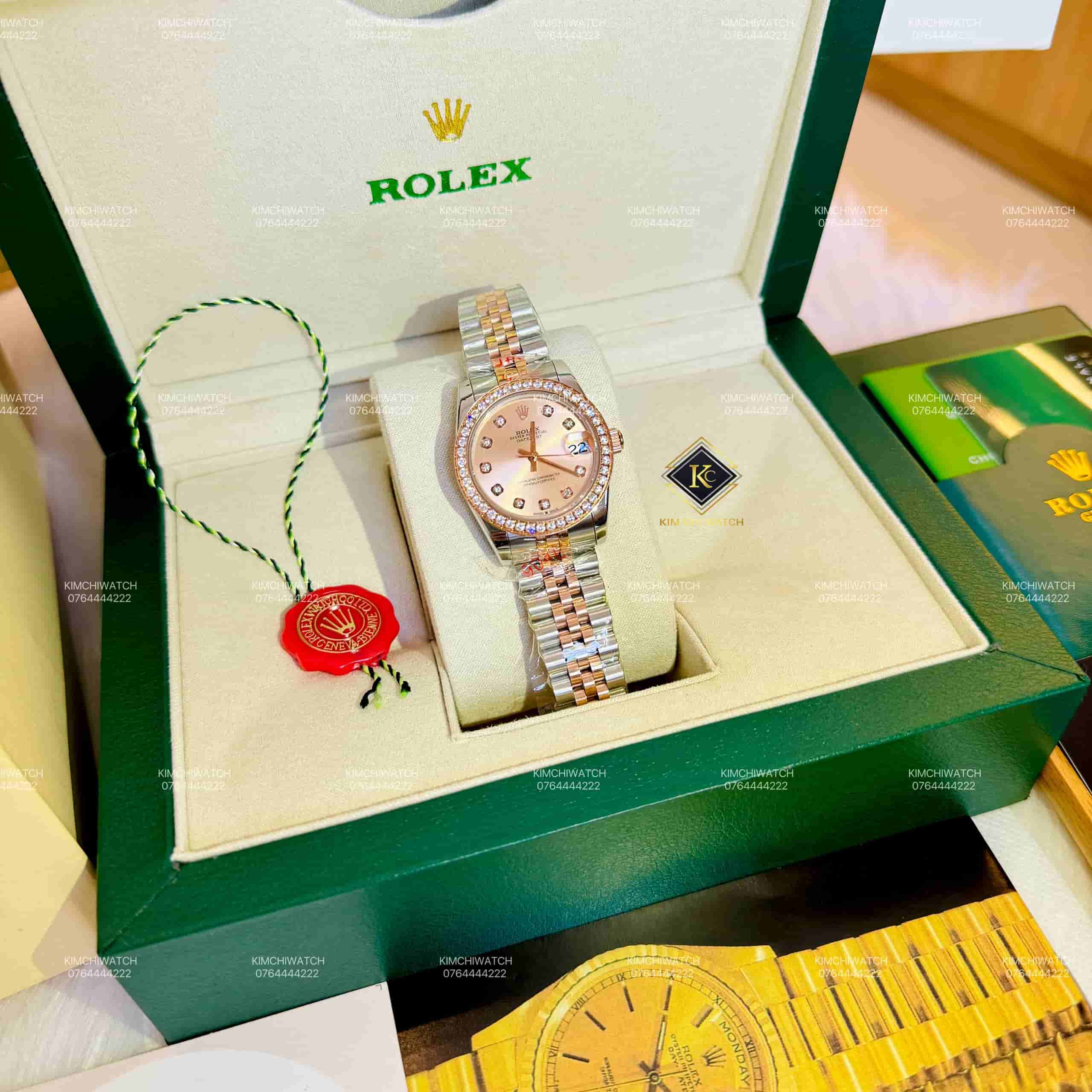 Đồng hồ Rolex 31mm vỏ bằng thép không gỉ , Kính tráng sapphire chống xước, chống nước 3atm, dây kim loại mạ PVD. Máy Pin Nhật bền bỉ . Tuổi thọ pin lên đến 3 năm . Đồng hồ Rolex lên tay rất sang chảnh, thu hút mọi ánh nhìn, giúp bạn luôn tự tin , xinh đẹp và tràn đầy năng lượng . Tặng fullbox : hộp gỗ bọc da cao cấp, túi giấy hãng, sổ thẻ , túi giấy của shop , thẻ bảo hành, voucher giảm giá... Đổi trả lên đến 30 ngày , lỗi đổi mới không cần chờ đợi. Bảo hành lên đến 2 năm giúp quý khách yên tâm sử dụng .