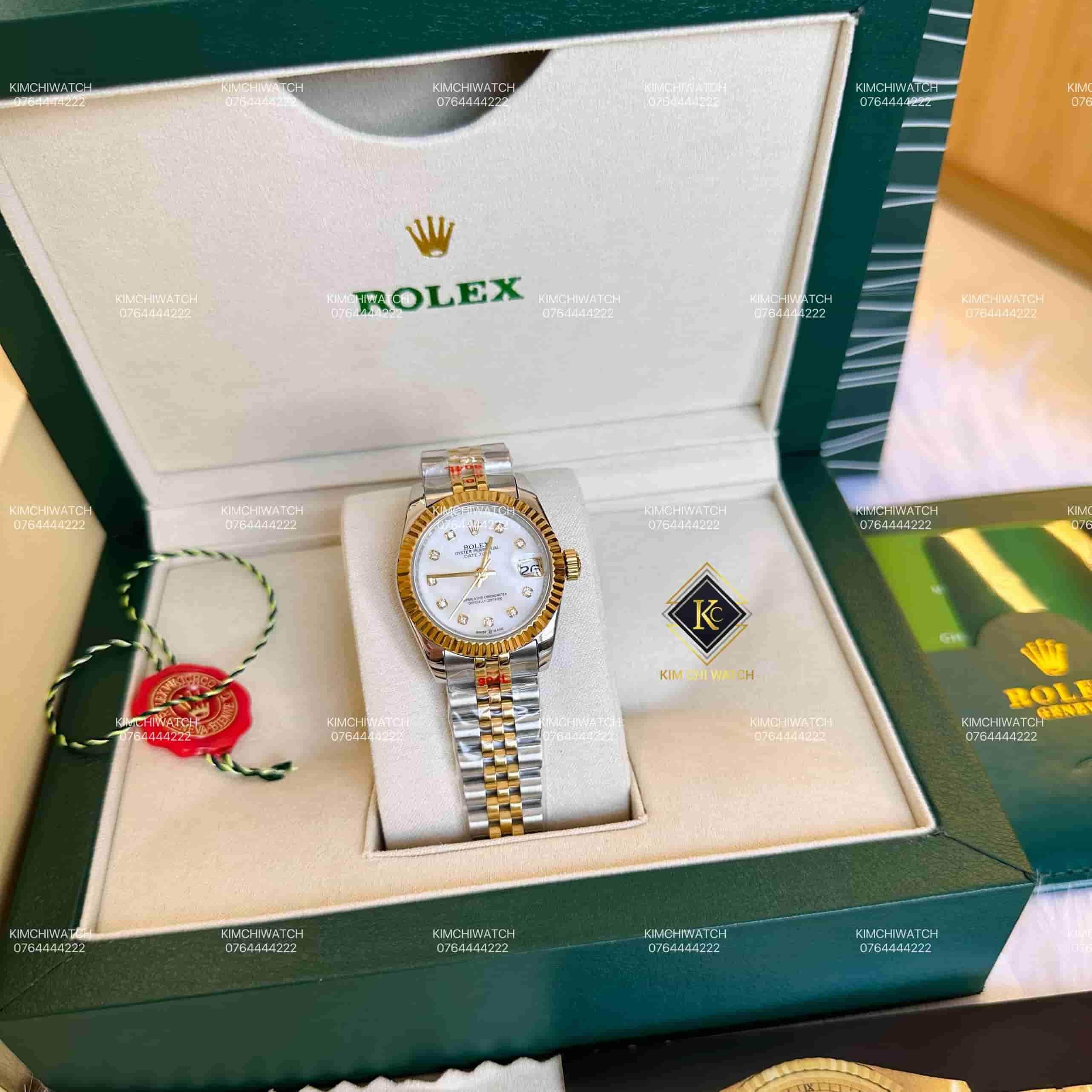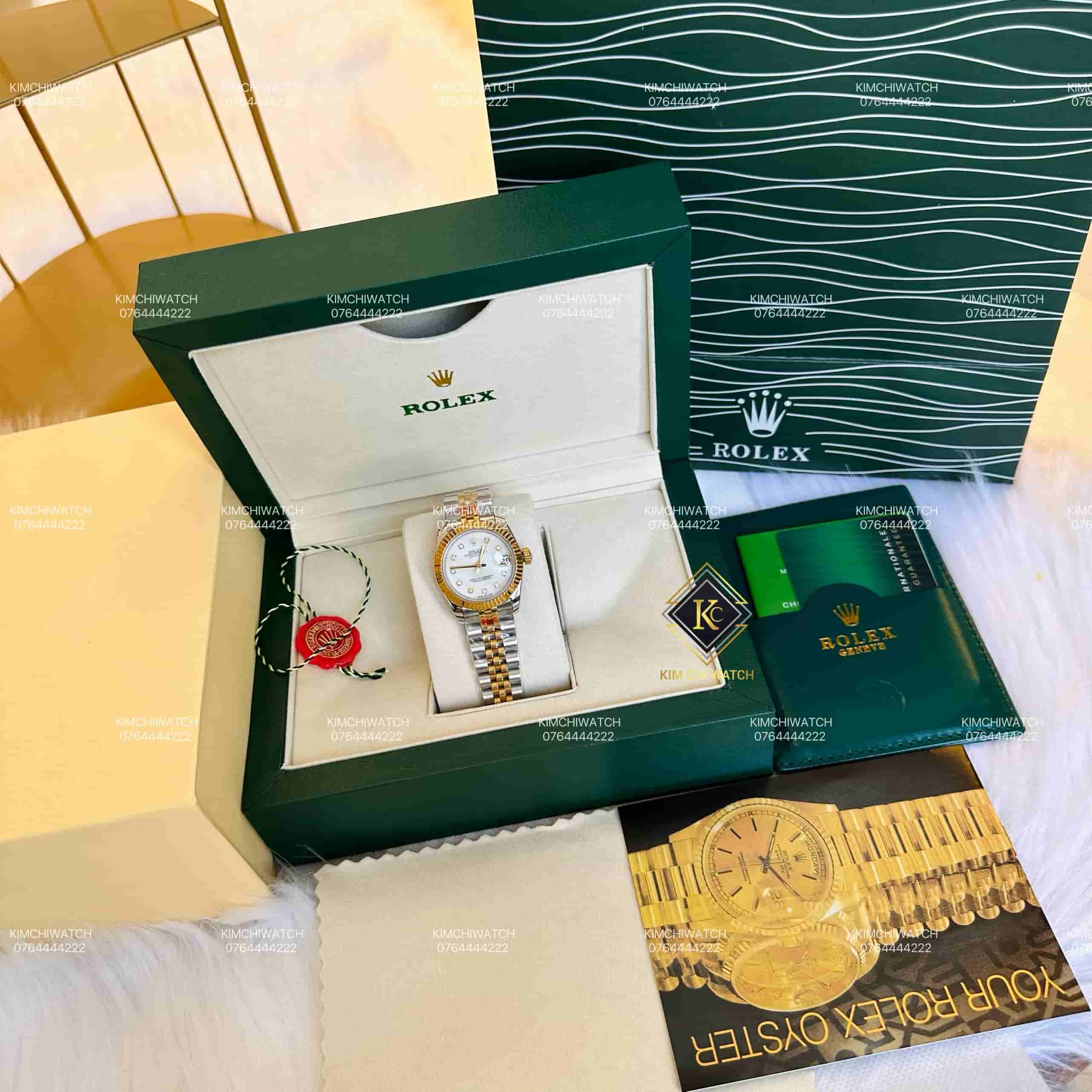 Đồng hồ Rolex 31mm vỏ bằng thép không gỉ , Kính tráng sapphire chống xước, chống nước 3atm, dây kim loại mạ PVD. Máy Pin Nhật bền bỉ . Tuổi thọ pin lên đến 3 năm . Đồng hồ Rolex lên tay rất sang chảnh, thu hút mọi ánh nhìn, giúp bạn luôn tự tin , xinh đẹp và tràn đầy năng lượng . Tặng fullbox : hộp gỗ bọc da cao cấp, túi giấy hãng, sổ thẻ , túi giấy của shop , thẻ bảo hành, voucher giảm giá... Đổi trả lên đến 30 ngày , lỗi đổi mới không cần chờ đợi. Bảo hành lên đến 2 năm giúp quý khách yên tâm sử dụng .